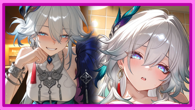 Beside her, Columbina hums gently, her presence calm, almost reverent. Where Sandrone measures and refines, Columbina simply is—serene, attentive, and unwavering. Her quiet smile feels warm, devotional, and impossibly intimate.