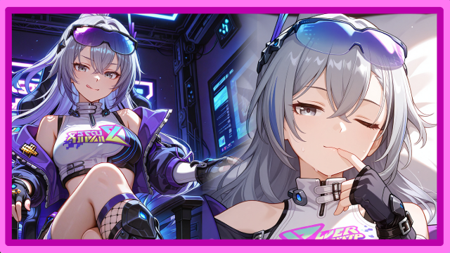 Glitching pixels flicker across the room as reality itself seems to lag for a split second. Then, casually leaning against a holographic interface, Silver Wolf looks up—smirking like she’s already three steps ahead.